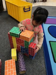 This week in preschool, we explored colors by making a rainbow with colorful scarves and sorting objects by color. The children colored objects that were red and objects that were green. They were also introduced to roll-a-dough letters (playdough and letter cards)- the first step is to practice making snakes with playdough. We also used the wood pieces (big line, little line, big curve, little curve) to make capital letters. The children were introduced tempera paint cakes to paint this week. We also started playing memory games with the children in small groups.