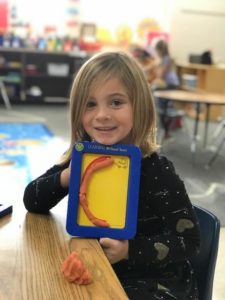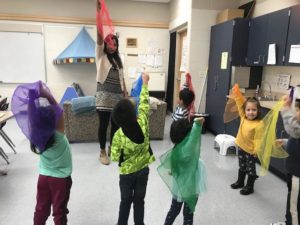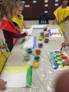The children were super excited with the first measurable snowfall! Please remember to send in the appropriate clothing for playing in the snow. That includes snow pants, snow boots, warm coat, hat, and mittens (no gloves unless they can put them on by themselves). Also, please be sure to send shoes or non-slip slippers to wear in the classroom. Snow boots in the classroom are wet and can be clumsy.
