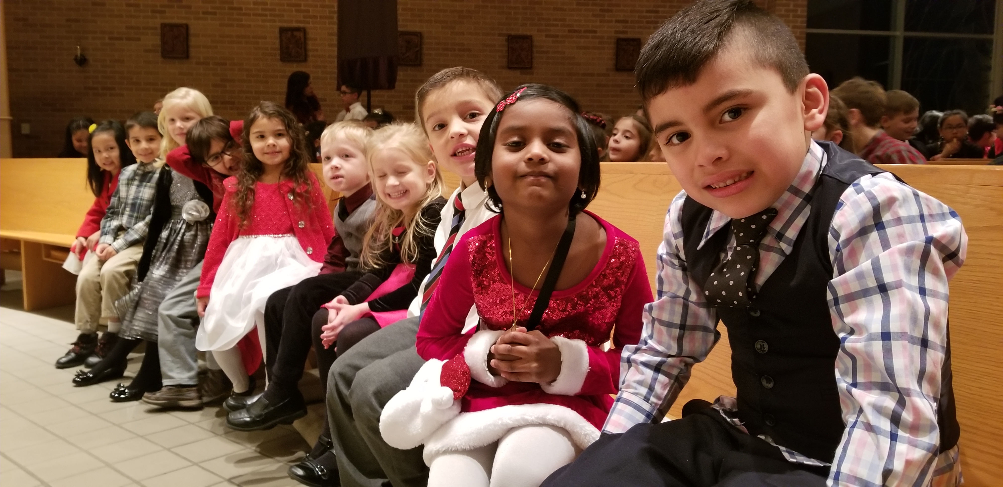 Christmas Kindergarten Pictures Enjoy the pictures of the Kindergarten Students while they were waiting to sing. They did a great job! They also learned to be patient as they listened to rest of the Christmas program. Merry Christmas! See you on Monday, January 6, 2020. Share
